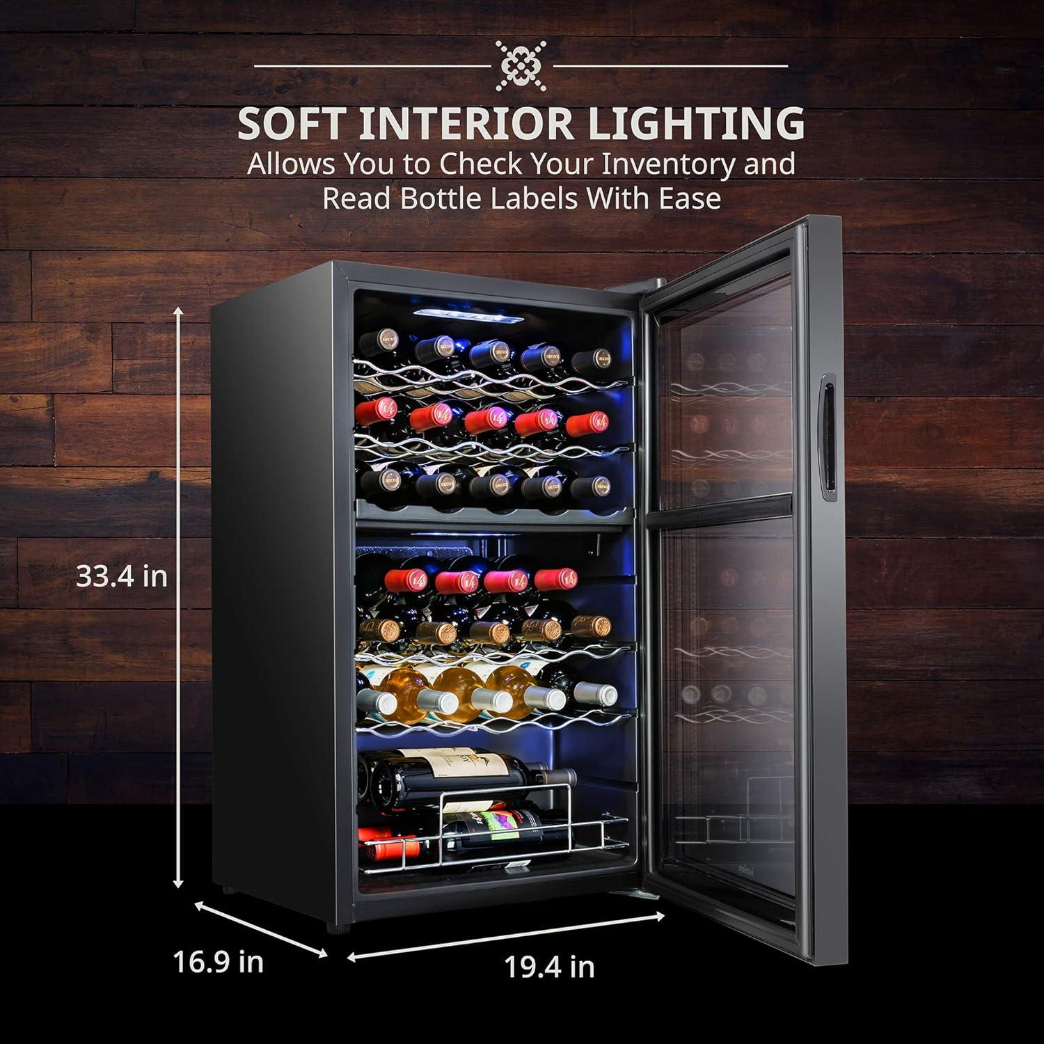 SOFT INTERIOR LIGHTING – Turn on the energy-efficient LED light to gently illuminate your collection. Say goodbye to harsh fluorescent bulbs that fade labels and affect flavor.