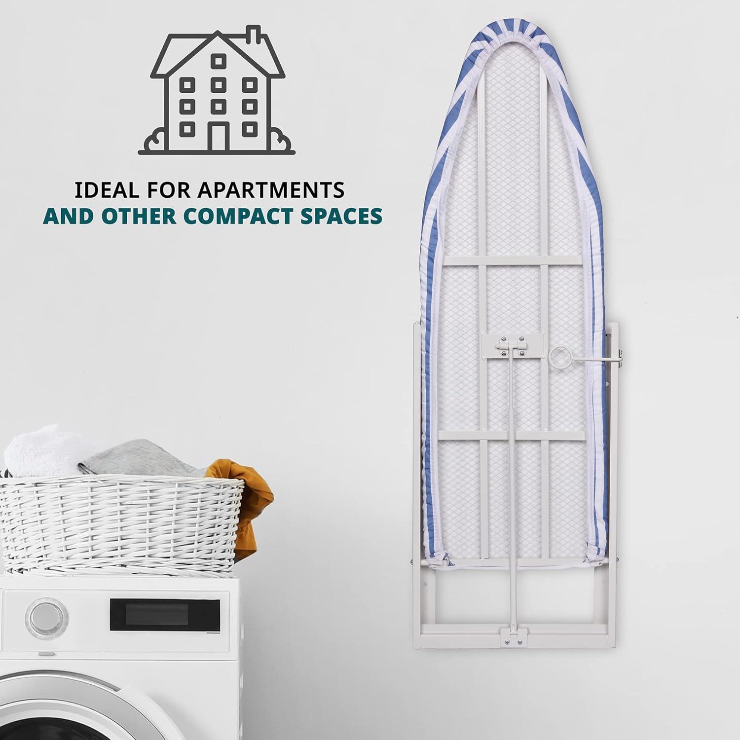 FREE WRINKLES, RECLAIM YOUR SPACE! | Foldaway Ironing Board Mounts Vertically to Wall for Amazing Space-Saving Convenience | Perfect for Ironing in Tiny Homes, Small Laundry Rooms, Studio Apartments, RVs & Other Tight Areas