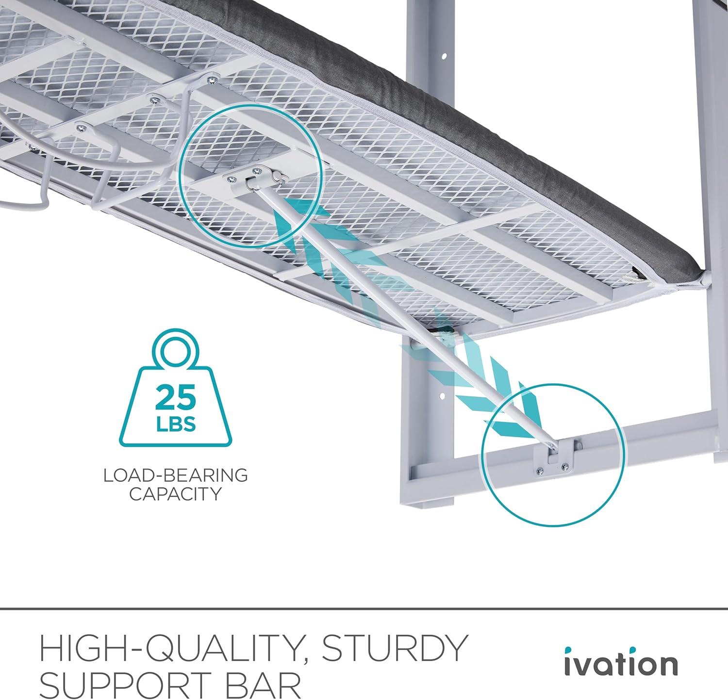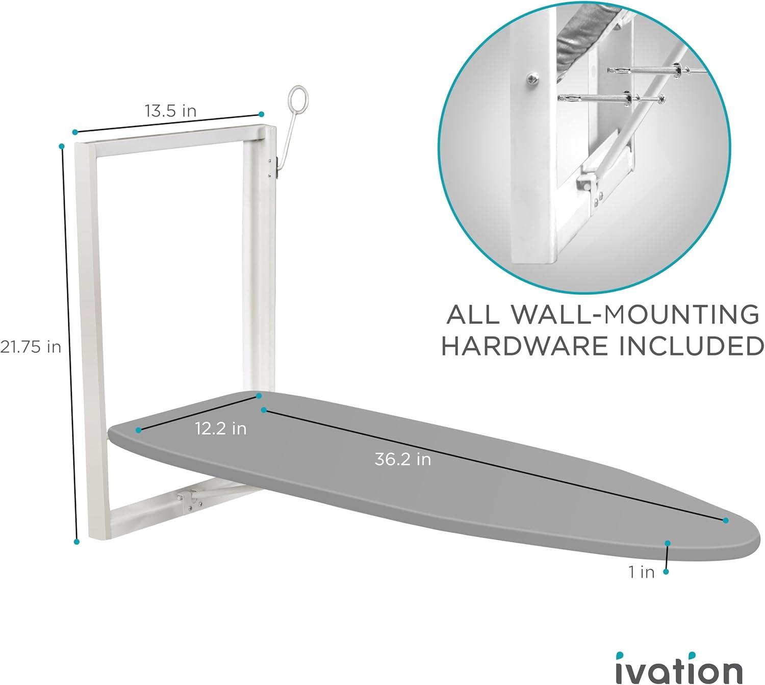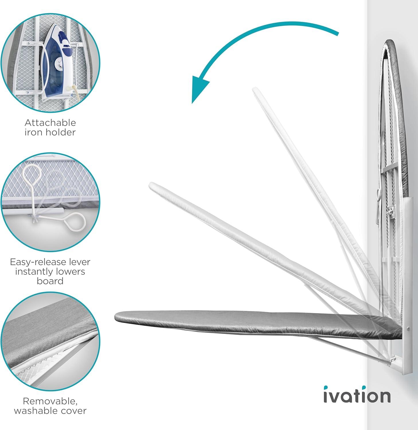 Ivation Wall-Mounted Ironing Board | Foldable 36.2” x 12.2” Sturdy Ironing Station for Home & Apartments, Easy-Release Lever, Removable Cotton Cover, Includes Mounting Hardware with Iron Holder(Without Ironing Board)